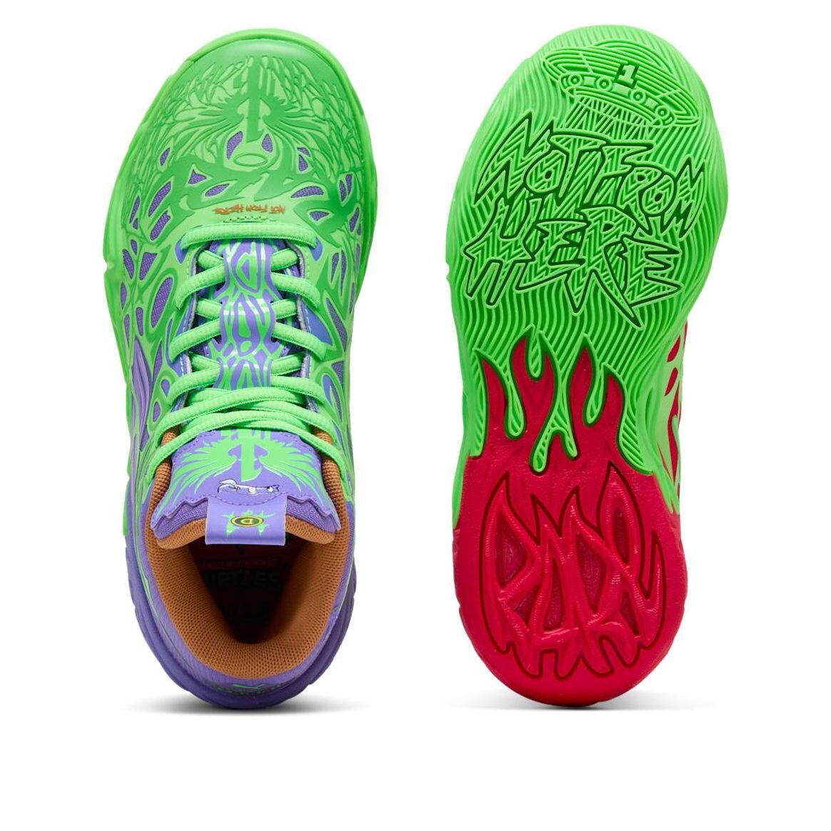 StyleCode : 312056-01 Occasion : basketball Colorway : Fluro Green Pes/PUMA Red/Dark Amethyst Release Date : 2025-02-08 Series : LaMelo Nickname : Raphael and Donatello