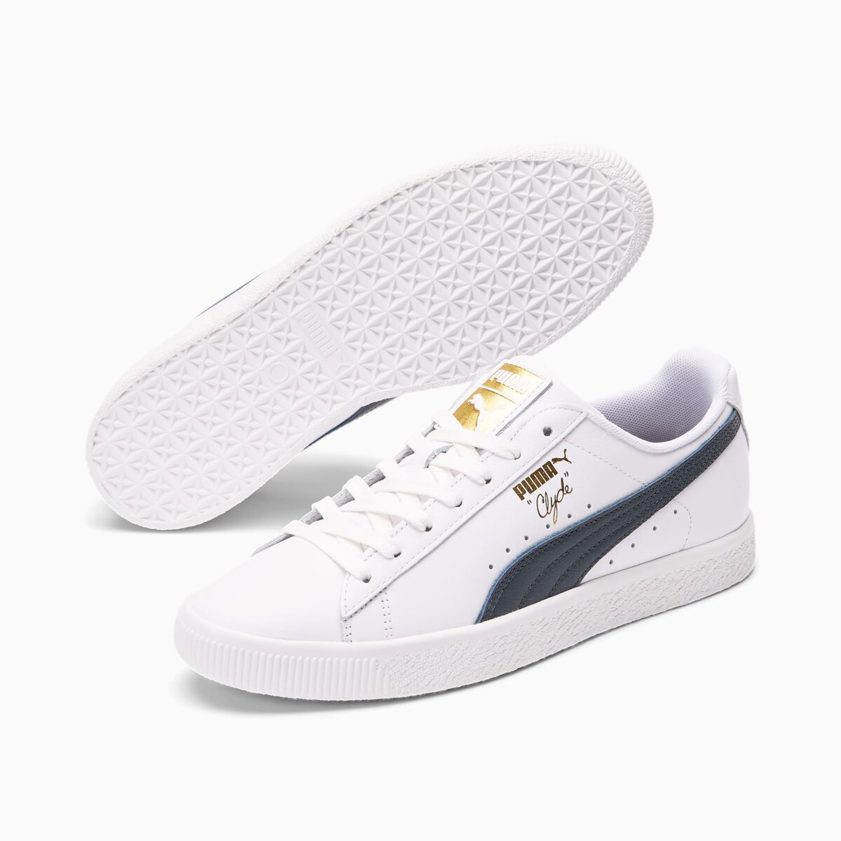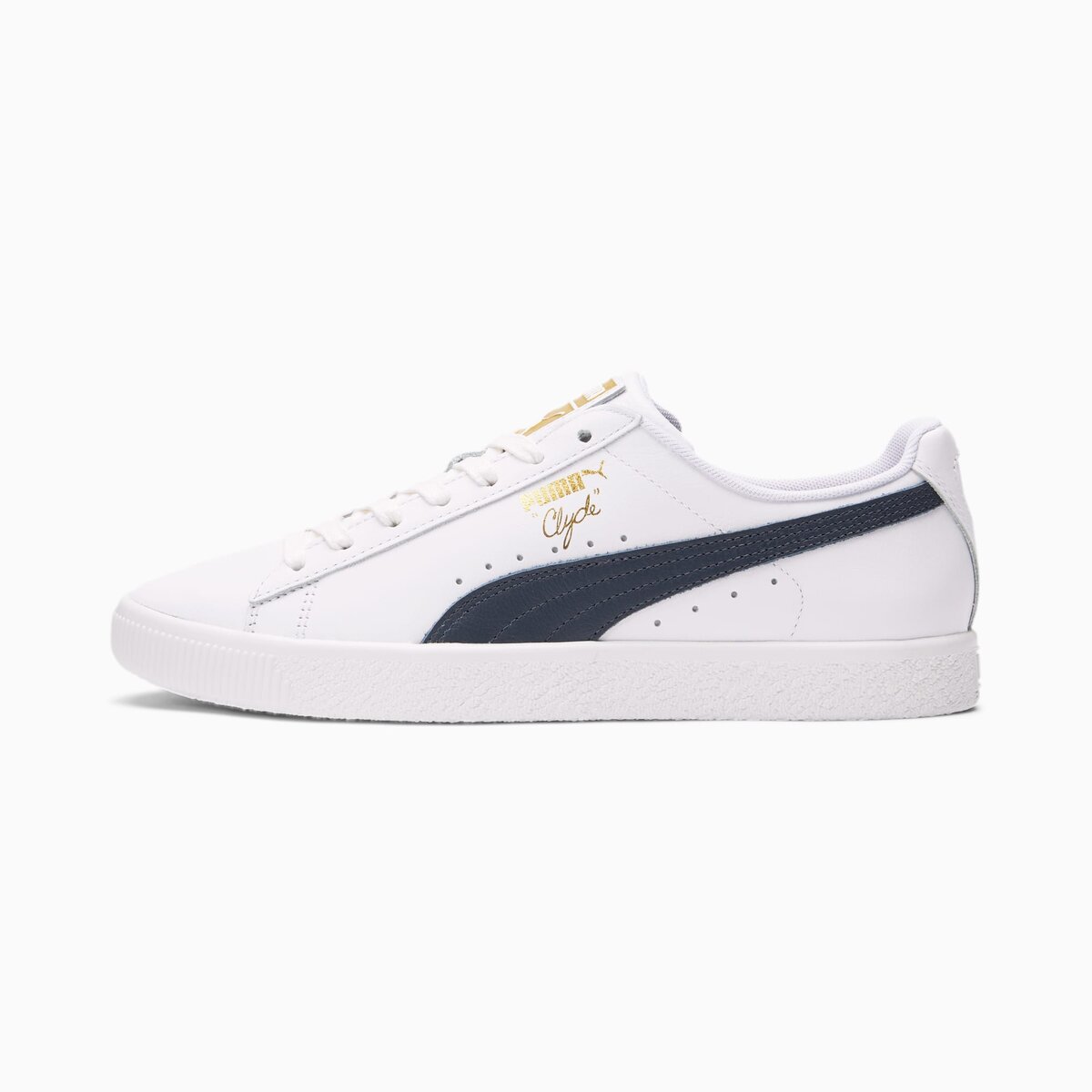 Pay tribute to a legend in this gold edition Clyde. Inspired by the legend himself, we created the PUMA Clyde back in 1973 just for basketball icon Walt “Clyde Frazier”. Known for his on-court playstyle and off-court street style, the Clyde is all class and flash. This version is updated with gold foil branding and a premium leather upper.